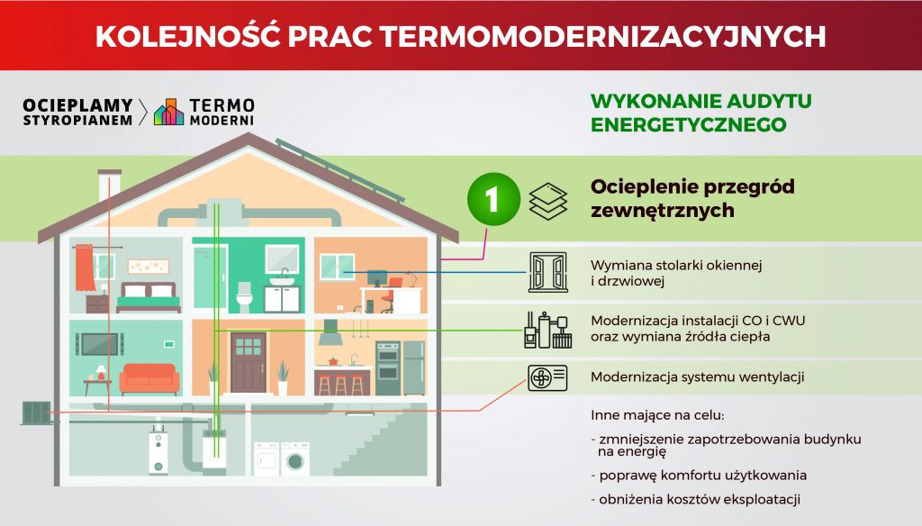 Rys. Kolejność prac termomodernizacyjnych (PSPS)